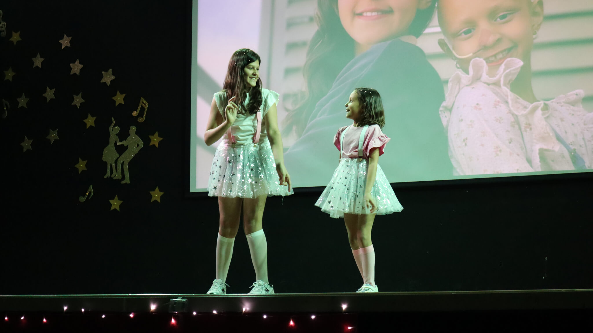 Uno de los momentos más especiales de la tarde volvió a estar protagonizado por la pequeña Sarah, alumna del colegio que superó un cáncer y que se ha convertido en un auténtico símbolo de esperanza para toda la comunidad. Sarah abrió el festival con una emotiva actuación junto a su hermana, arrancando los primeros aplausos de una gala marcada por la emoción y la solidaridad.